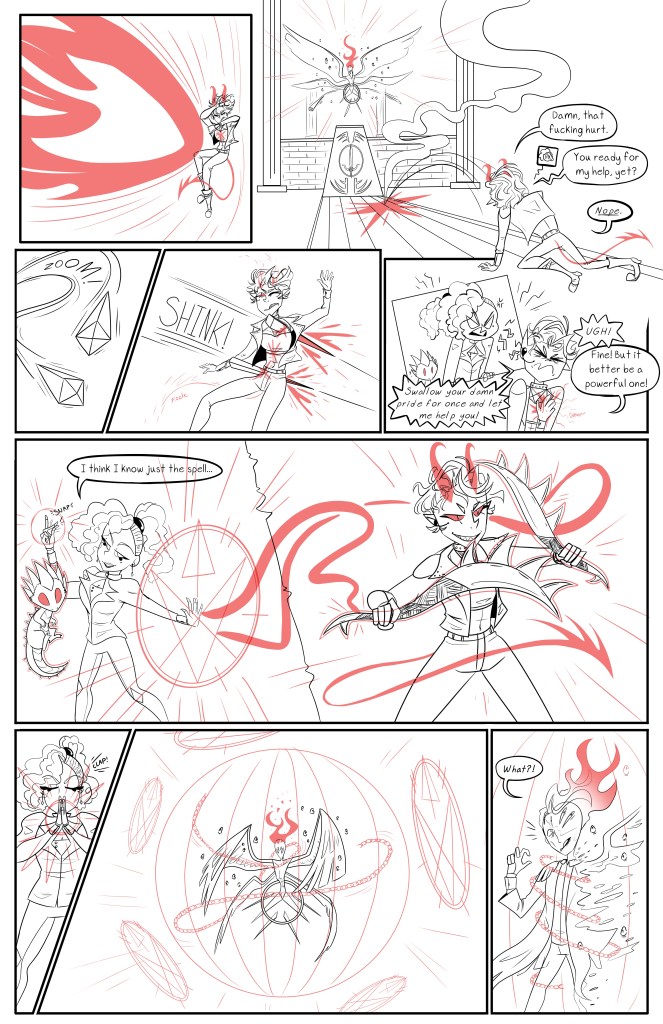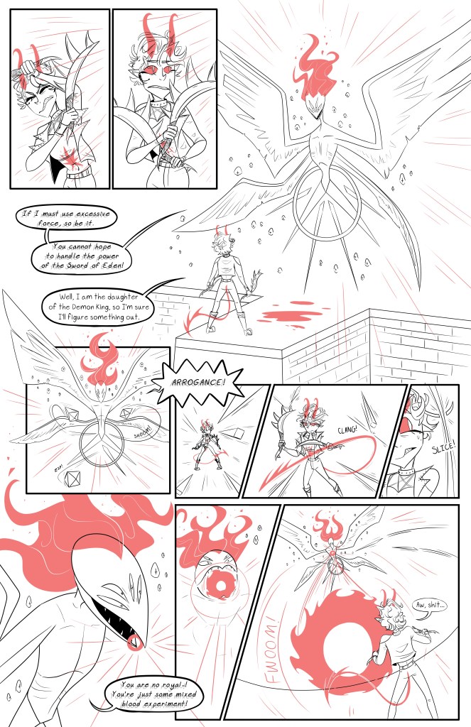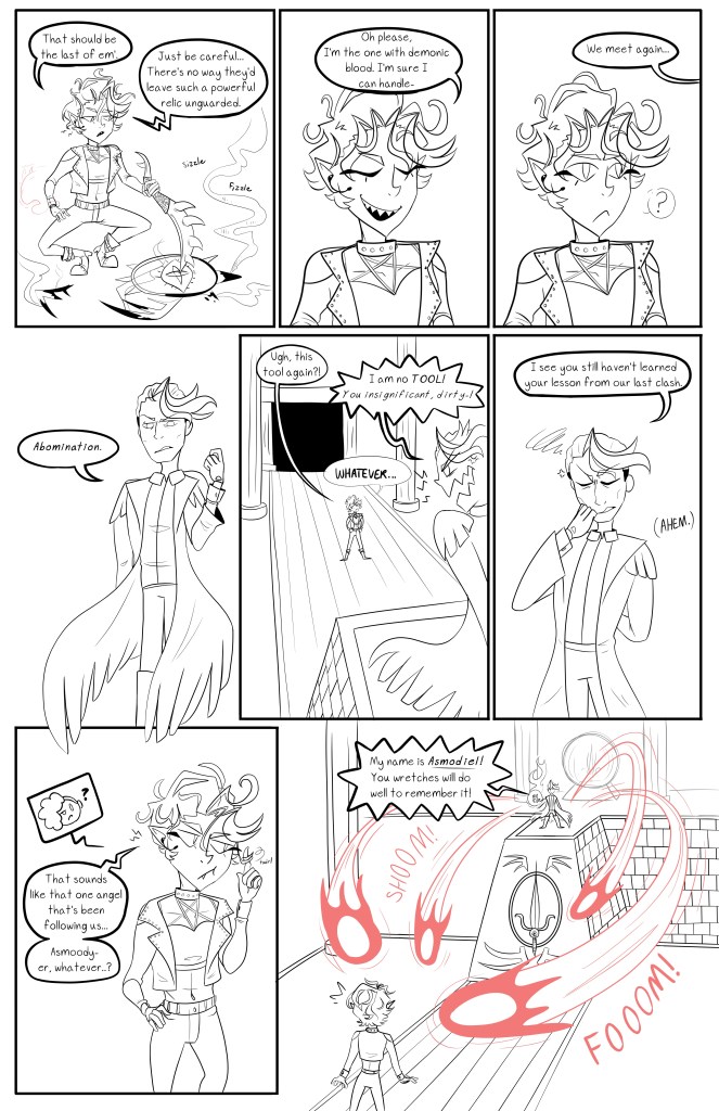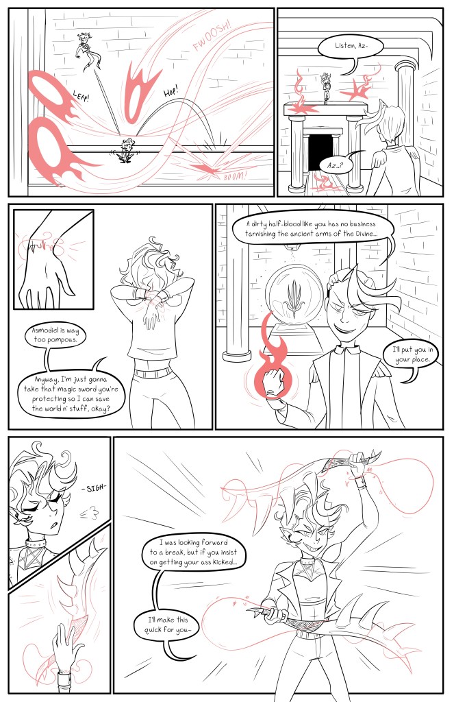 The Cambion is a 7 page standalone comic about a half-demon woman who’s on a mission to steal an ancient sword that’s being guarded by an angel.