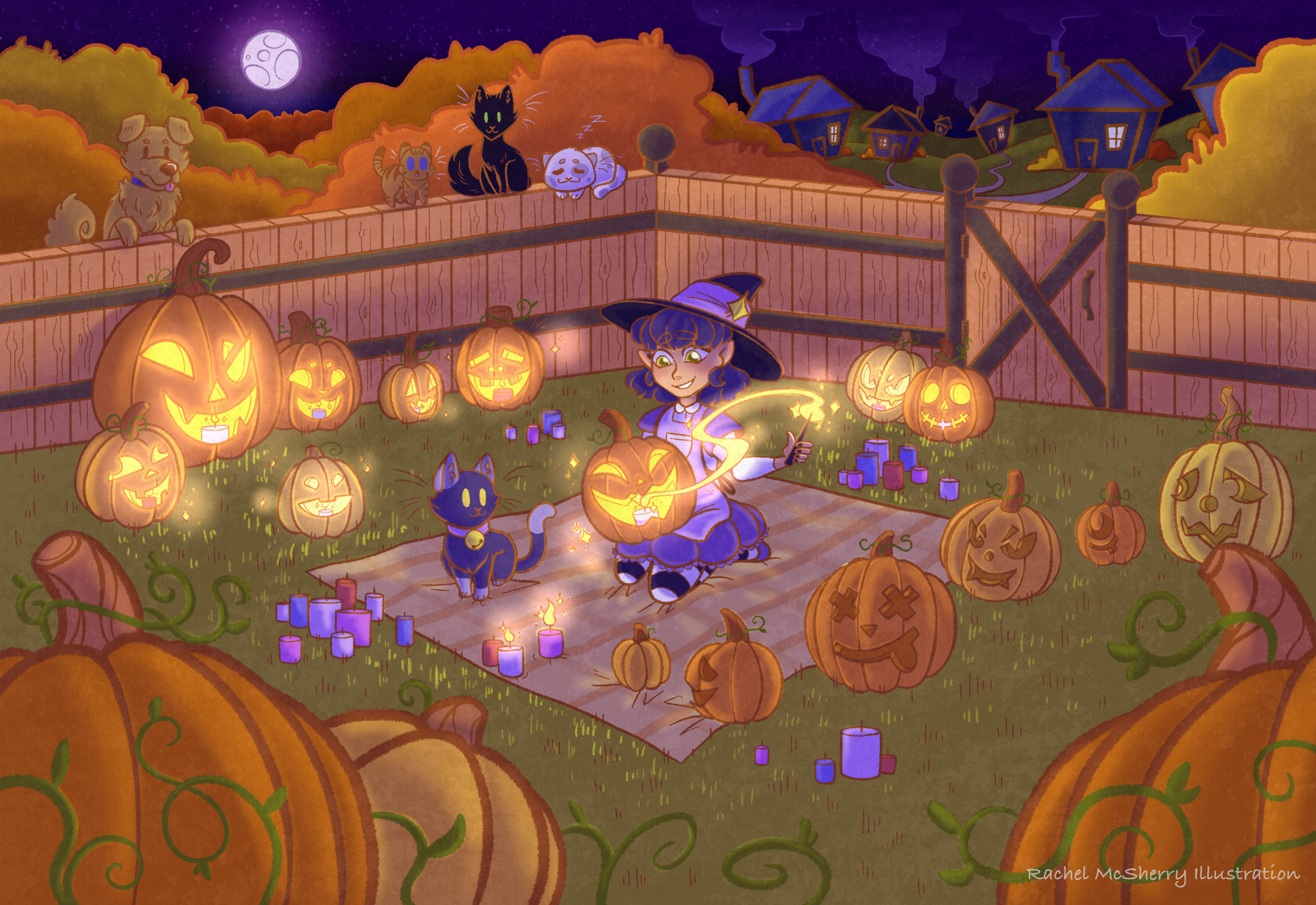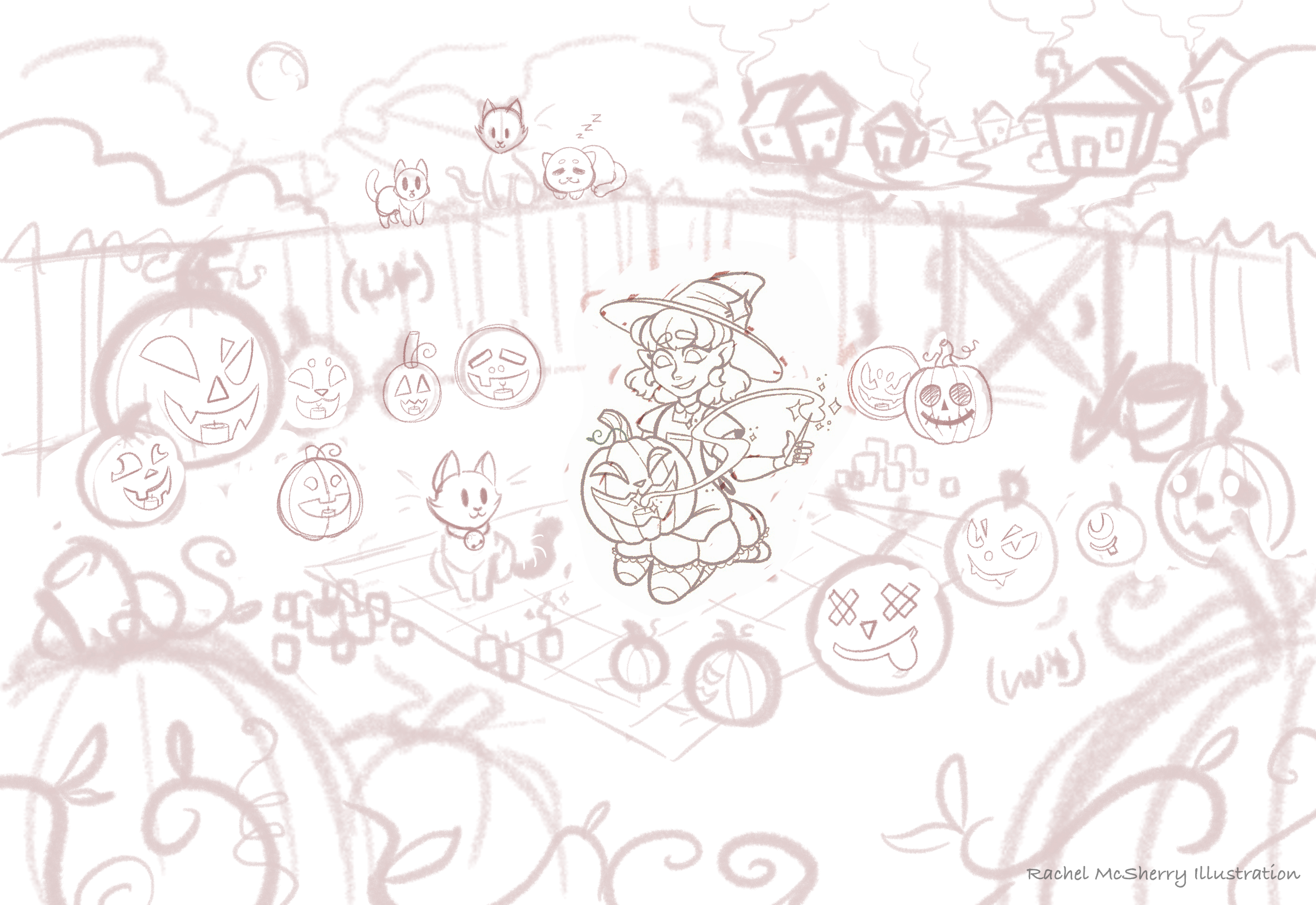 My name is Rachel and I’m an illustrator who works primarily in digital media with programs like Adobe Photoshop and Adobe Illustrator. My work centers around rich color palettes, enchanting compositions, and refined, bold line-work. I am currently working full-time with Concrete Software as a Game Production Artist on their up and coming idle game, MyArcadeEmpire !
