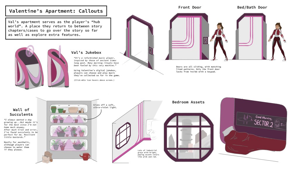 My Cyberpunk Valentine is a dark, dystopian mystery game set over 600 years in the future within the 3-tiered mega-city of Refuge. The game is half 2D visual novel and half 3D semi-open world exploration. There are story-heavy chapters which allow the player time to freely explore areas to find clues, interrogate witnesses and piece together what happened and why.
