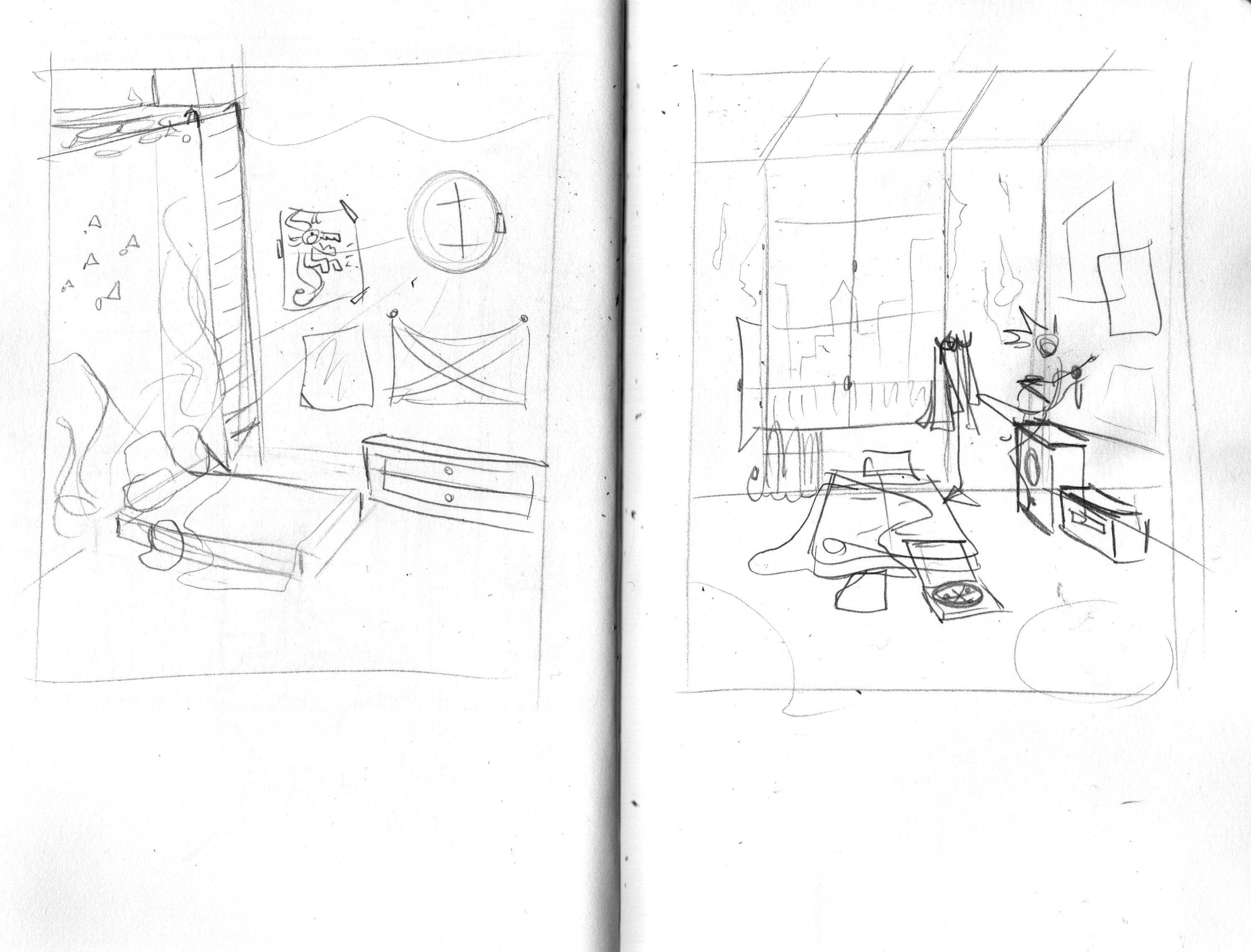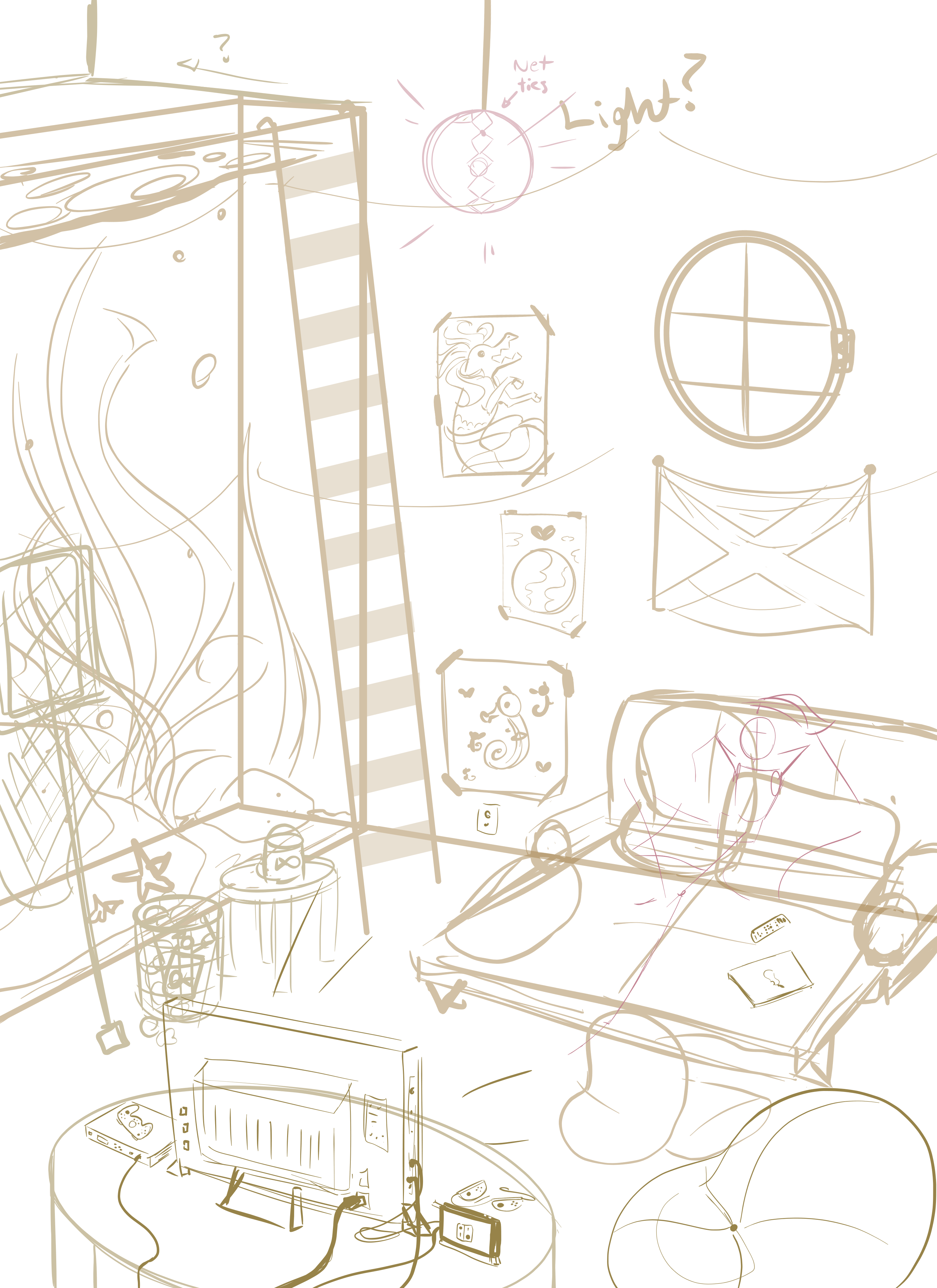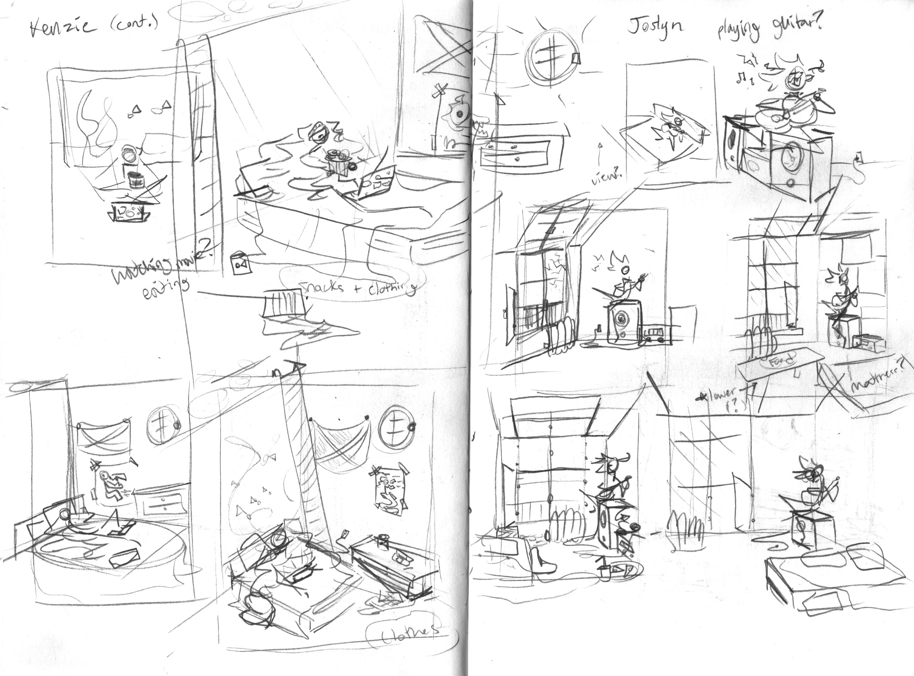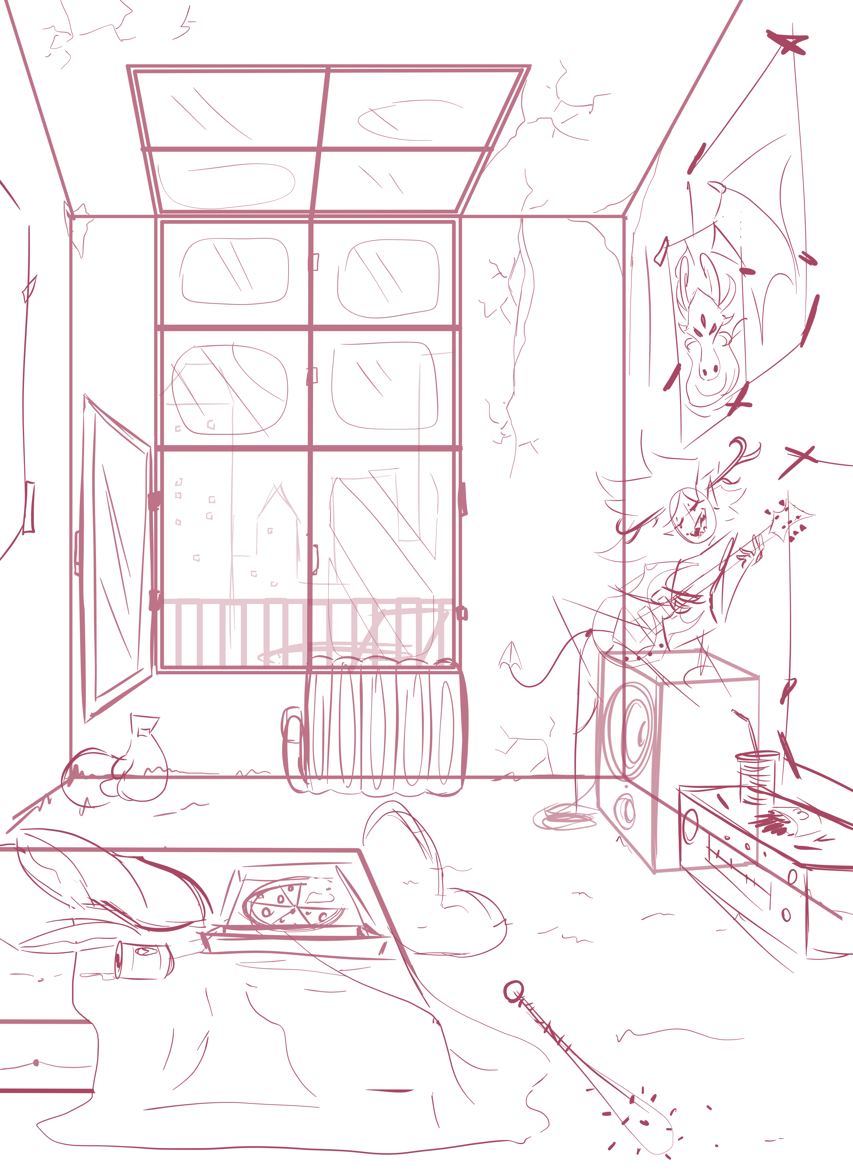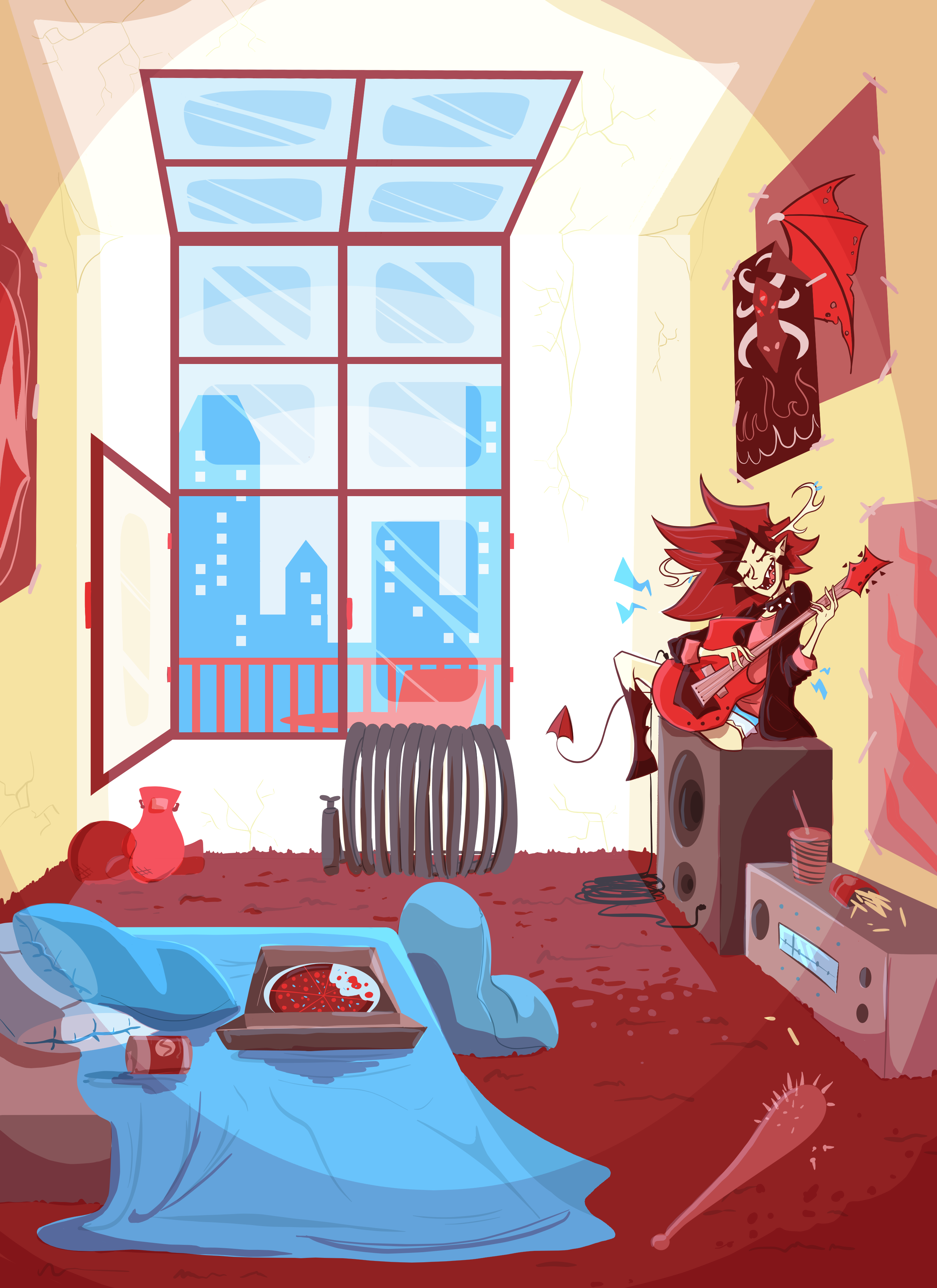 I chose to design three bedrooms because someone’s living space can tell a lot about a person. Whether it’s chaotic, tidy, colorful, relaxed- even the views from windows and placements of certain objects are used to hint towards the setting outside the rooms. All of this was thought through to bring the most life to these illustrations as possible and, by extent, make the characters as tangible and believable as possible.