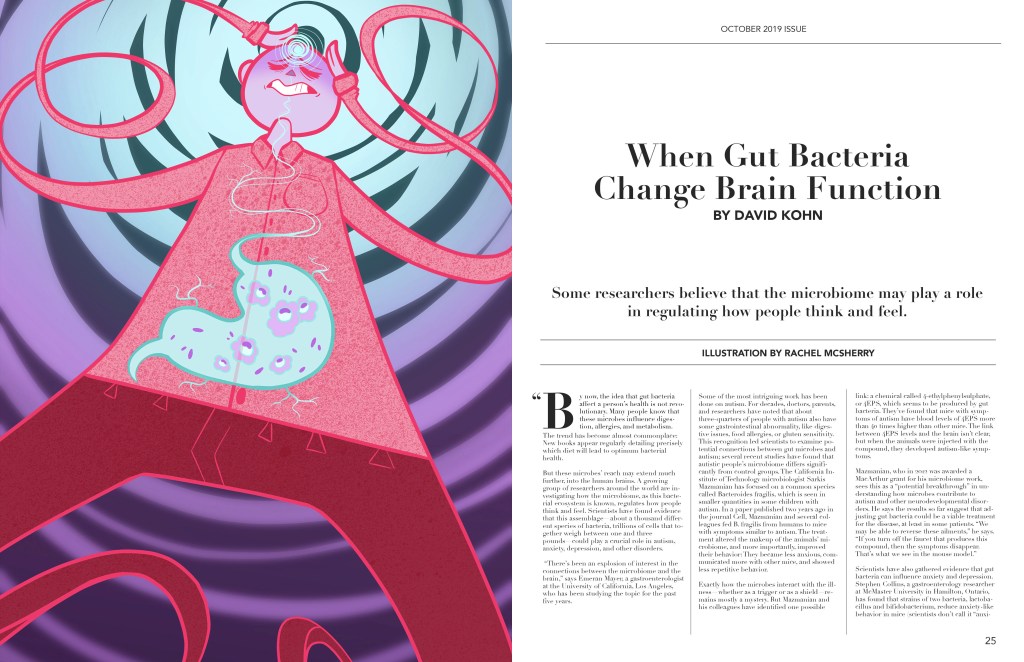 For this project I was asked to create an illustration to go alongside an editorial article explaining bacteria living in your gut that can affect your brain and how you think and feel.